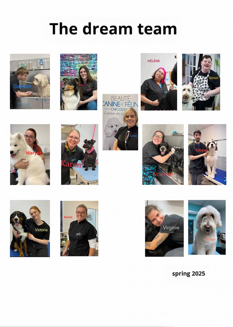 She became a grooming technician in February 2025. This super mom of 4 children, 3 dogs, and 1 cat is a fan of dance, her abundantly flowered yard, and figure skating... her days are more than full. And that's not all—she's an artist and is always in a good mood. We are lucky to have Maryse with us.